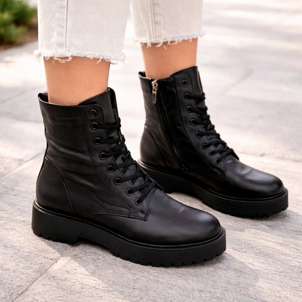 Anfibi bassi donna artigianali vera pelle con zip laterale colore nero