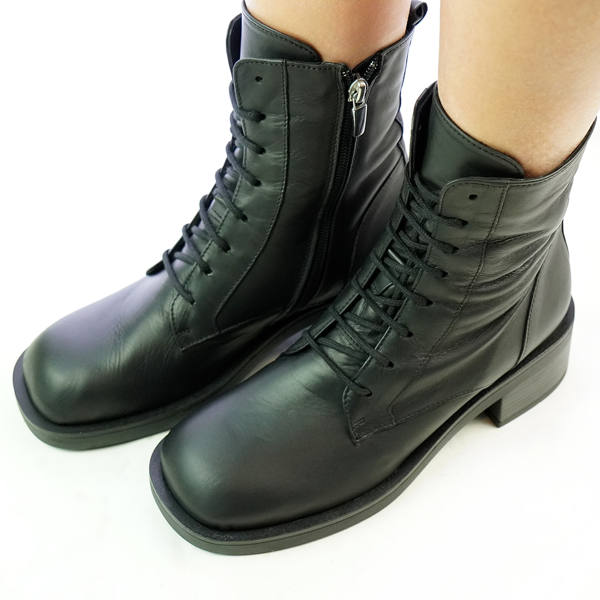 Anfibi donna artigianali vera pelle con zip laterale colore nero