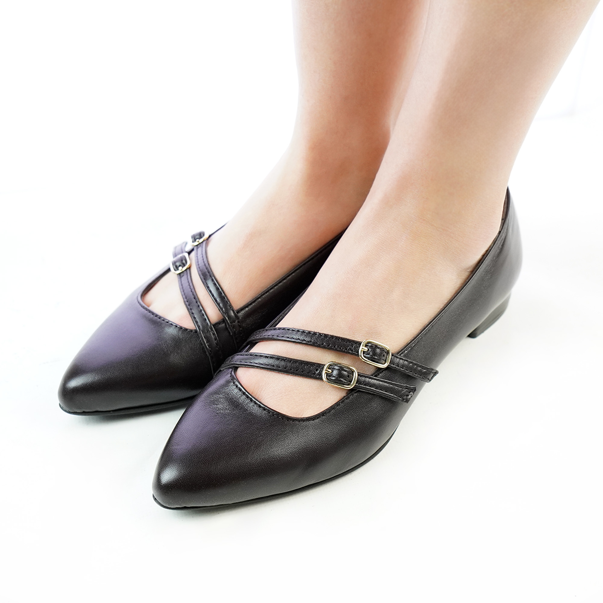 Ballerine donna artigianali vera pelle con due fibbie colore testa di moro