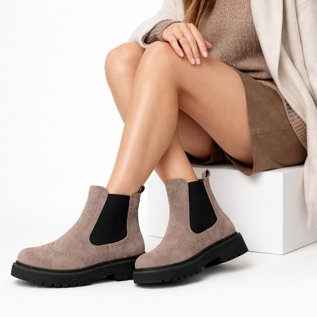 Beatles stivaletti bassi donna artigianali in velour colore taupe