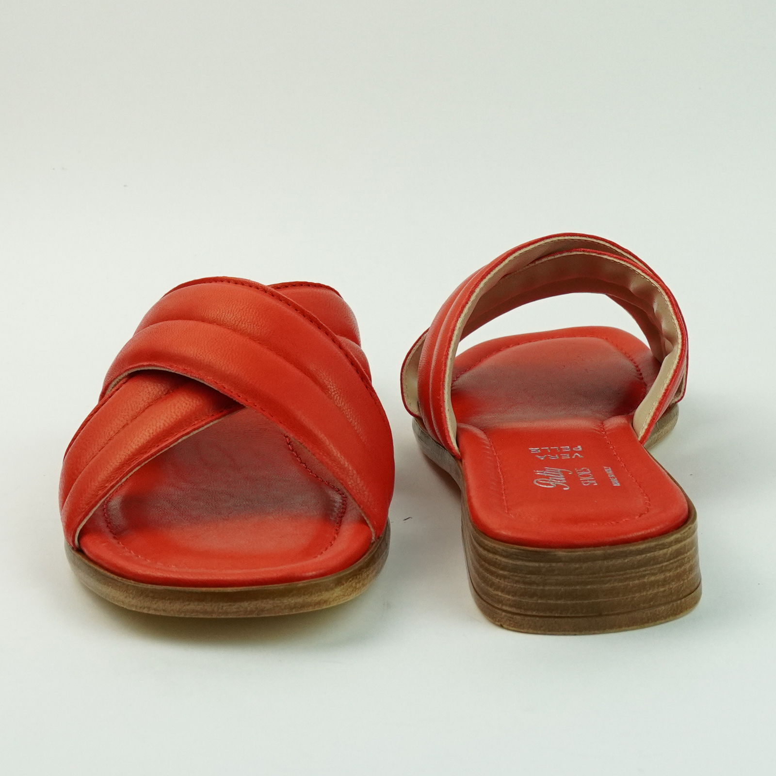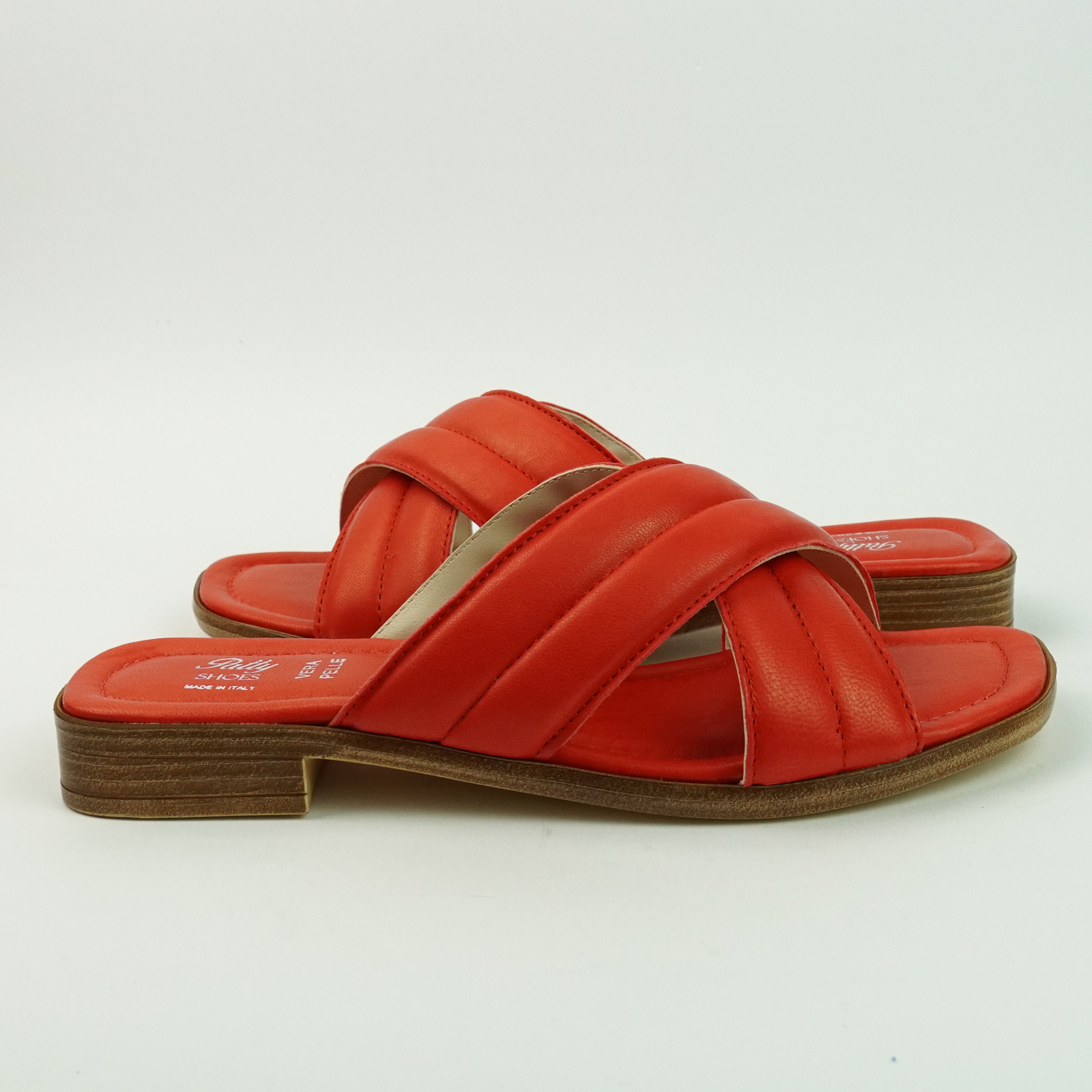 Ciabatte in vera pelle da passeggio con due fasce incrociate colore rosso