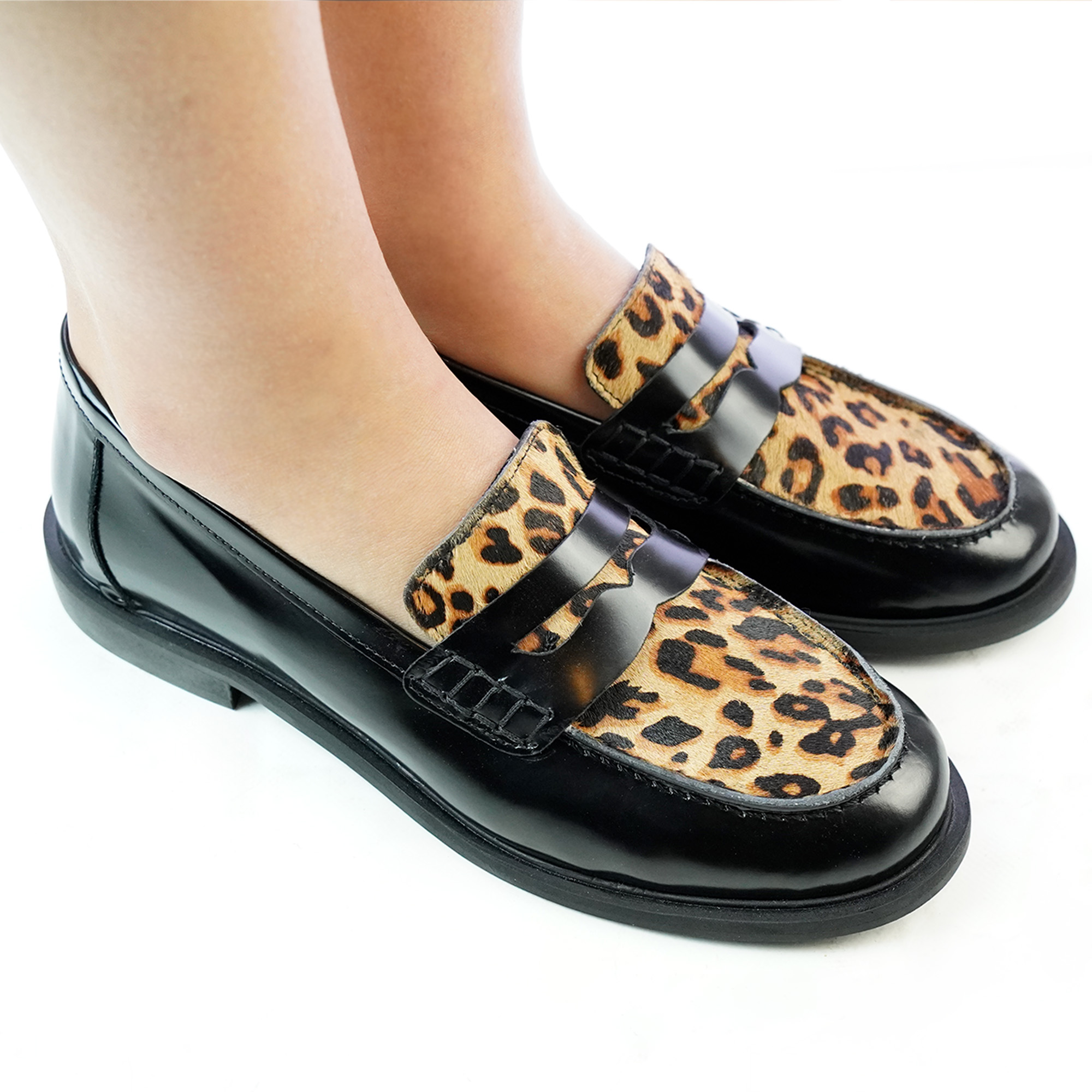 Mocassini donna in vera pelle con inserto cavallino colore nero