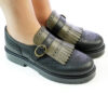Scarpe donna con frange e fibbia in vera pelle nappa colore fumo