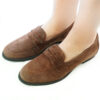 Scarpe donna con frange e fibbia in vera pelle nappa colore fumo