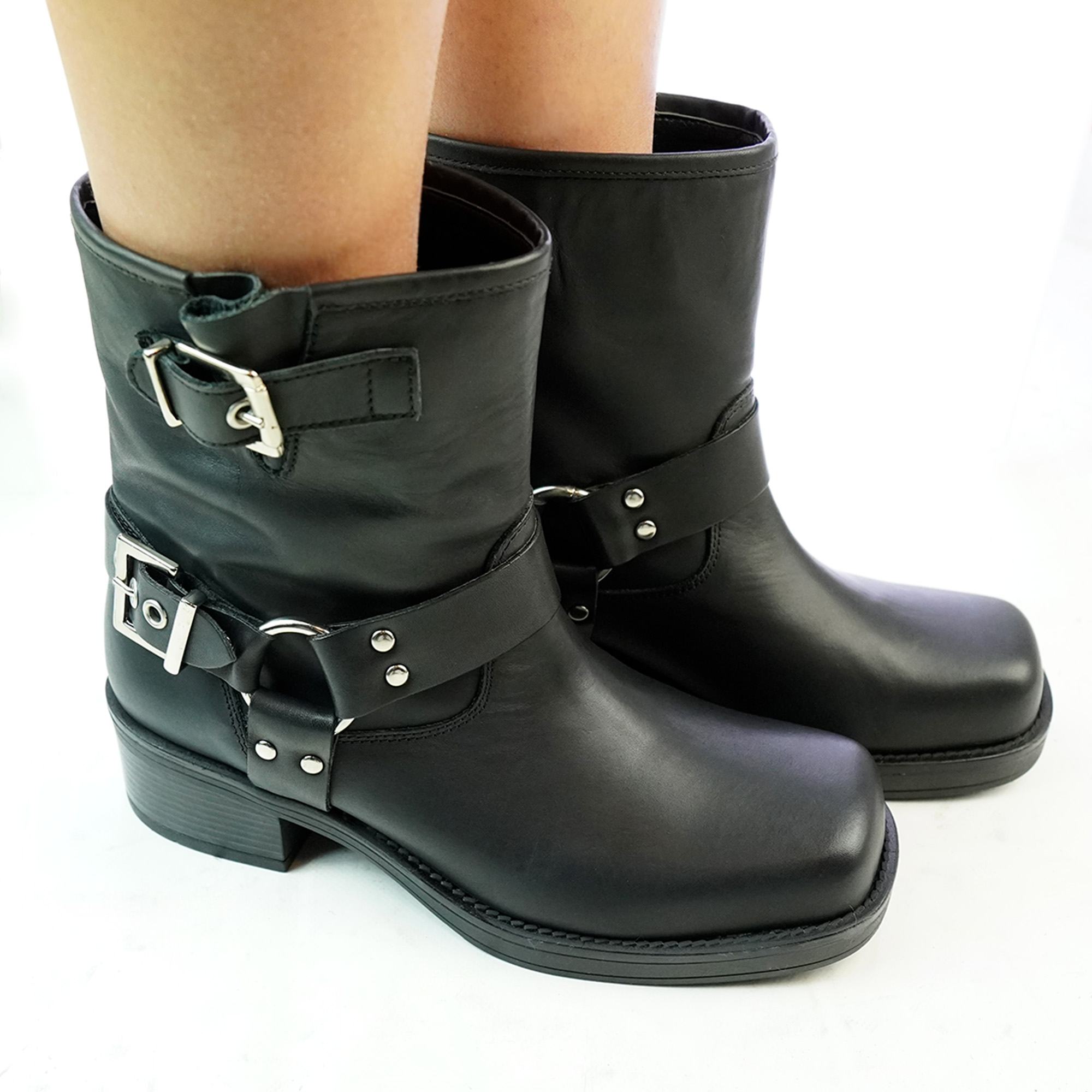 Stivaletti biker donna vera pelle colore nero