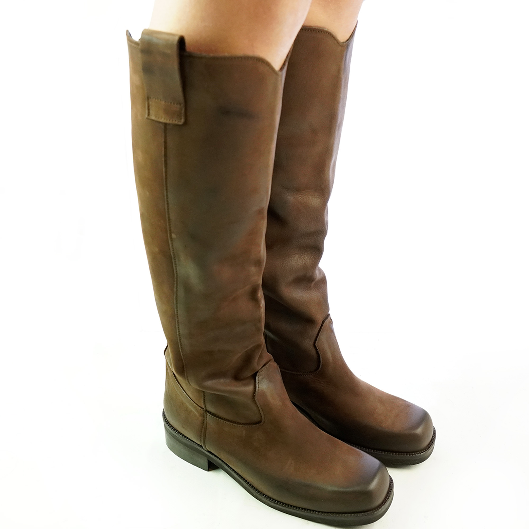 Stivali alti donna in nabuk colore testa di moro